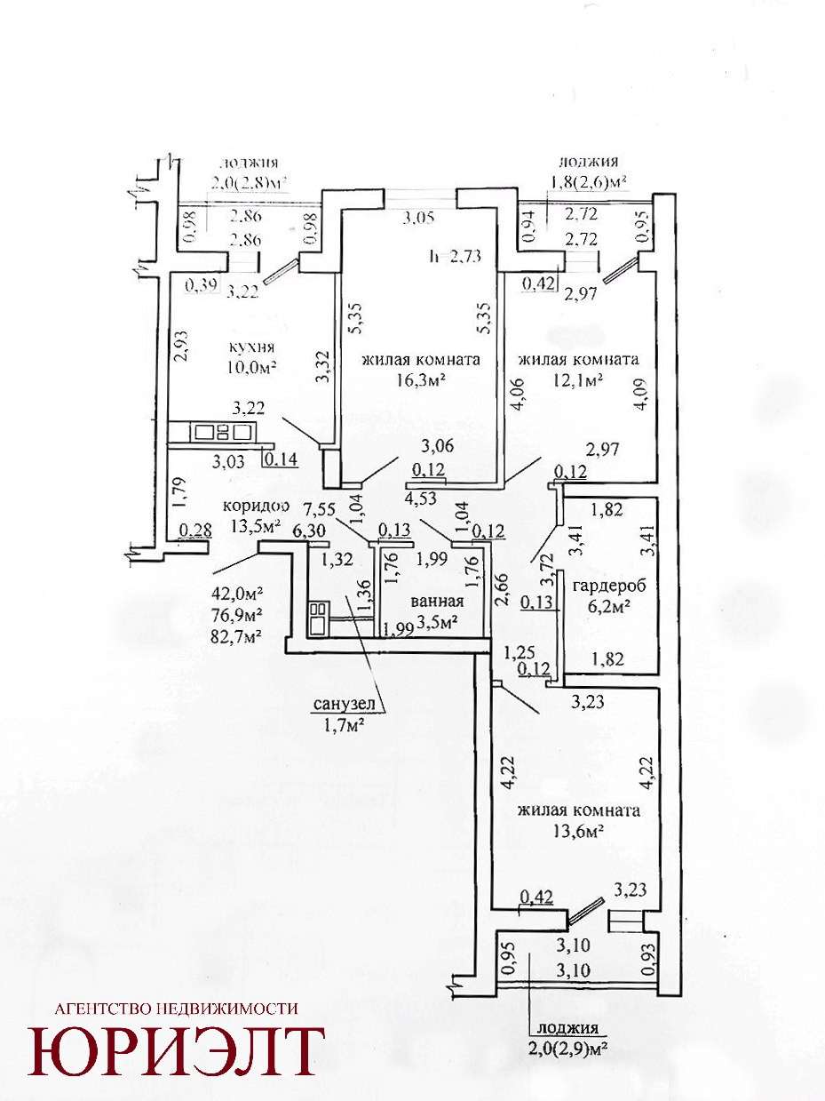 Общая площадь - 76.9 м2, жилая 42 м2, кухня 10 м2, три застекленных лоджии, все окна и рамы - ПВХ. Санузел раздельный. Дополнительно имеется отдельная комната-гардероб без окна площадью 6.2 м2 с отдельным отоплением. Квартира расположена на 13-м этаже 14-этажного монолитного дома, с ремонтом от застройщика: обои, натяжные потолки, ламинат. В подъезде два лифта - пассажирский и грузовой, из подъезда два выхода - на улицу и во двор. В квартире установлены батареи с возможностью регулировки температуры, также имеется теплосчетчик.