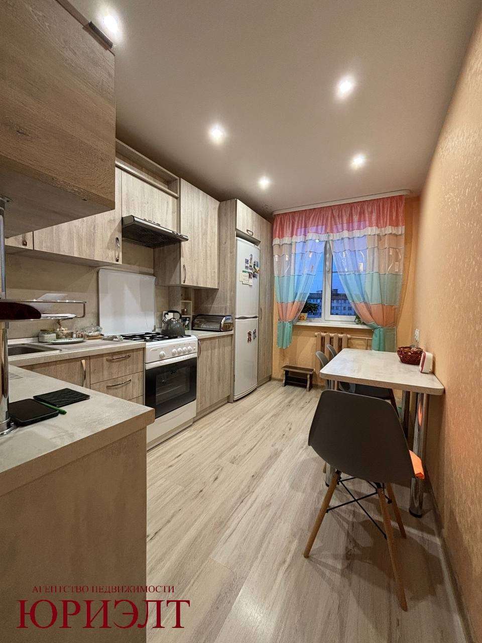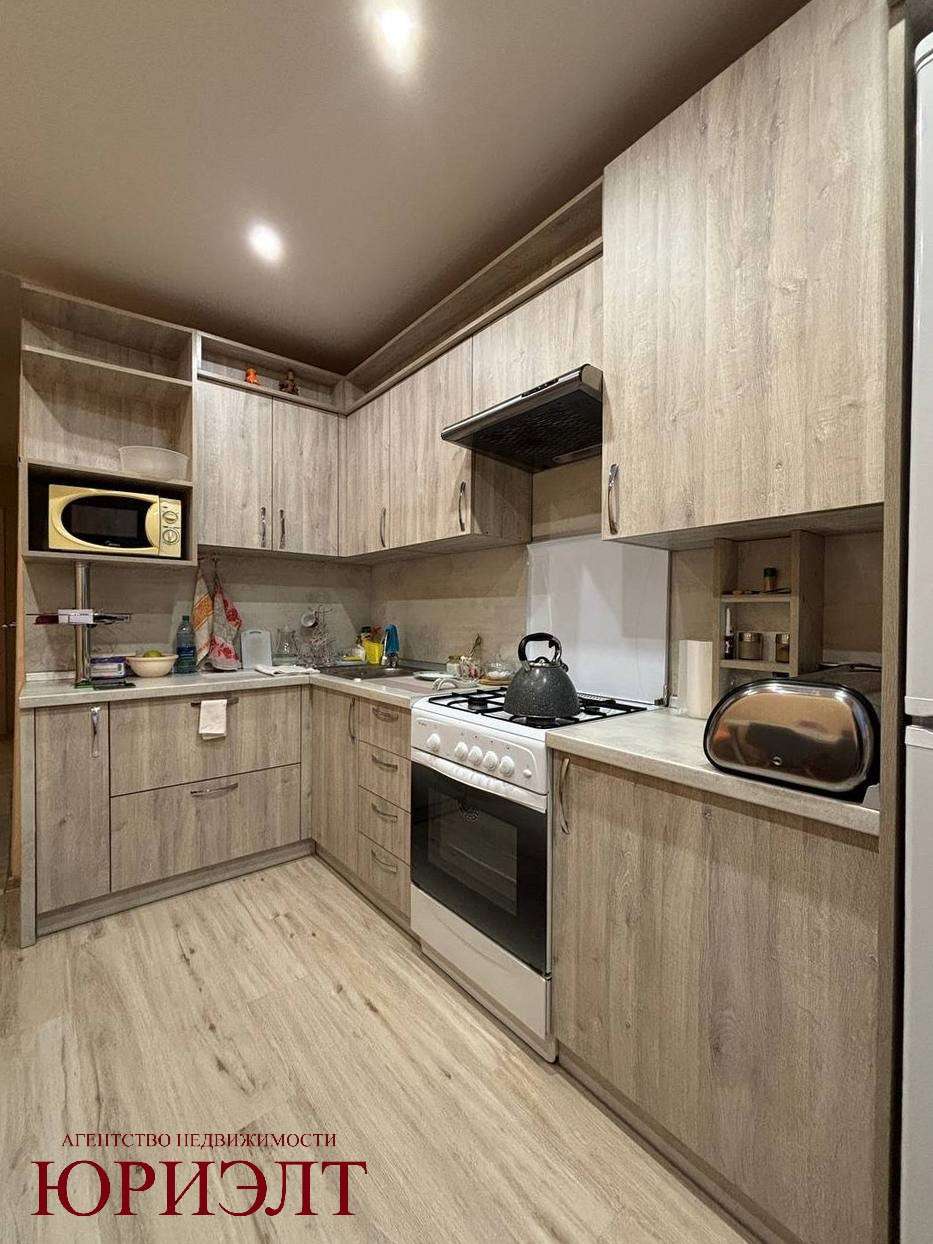После продажи остаётся новый встроенный кухонный гарнитур и встроенные шкафы в коридоре.