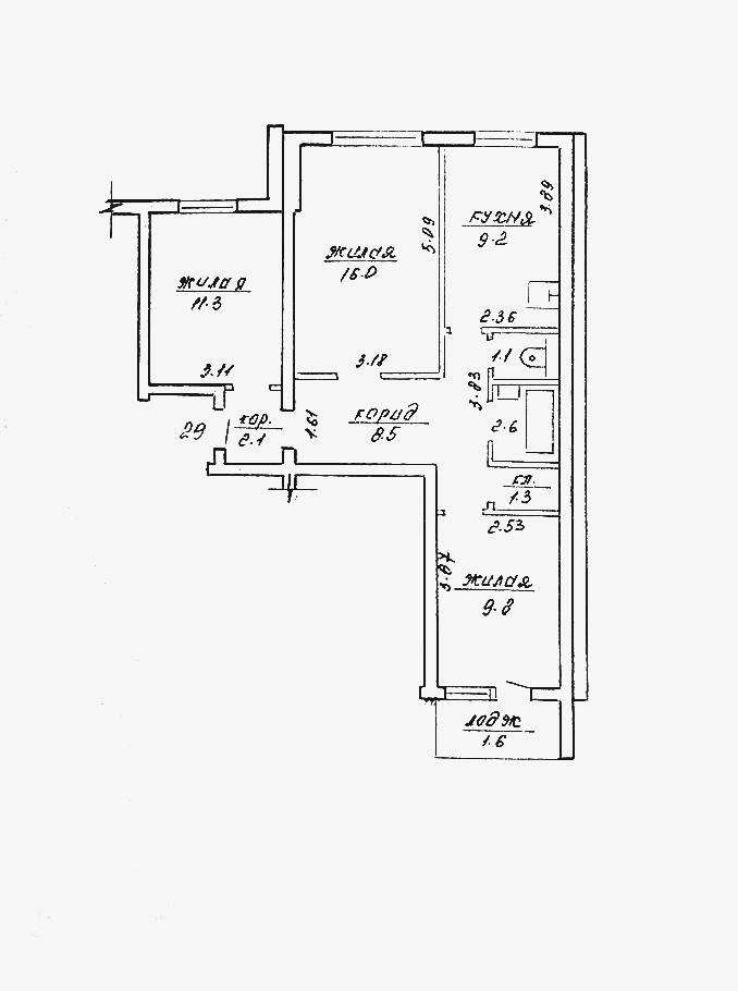 Общая площадь по СНБ 63,5 м2/ общая площадь жилого помещения 61,5 м2/ площадь жилых комнат 37,1 м2 (комнаты 16,0 м2, 11,3 м2, 9,8 м2)/ кухня 9,3 м2, высота потолков 2,55 м.